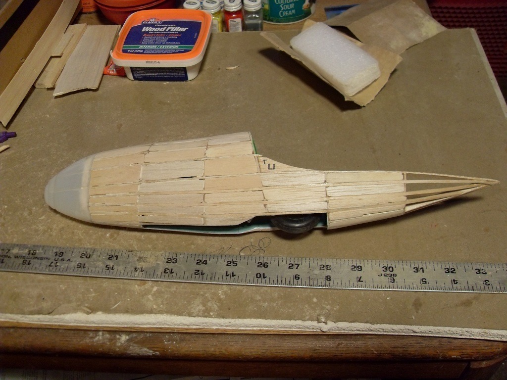 Infill done on center nacelle. I had originally scalloped the formers before deciding to do the infill technique. So I needed to bevel the ends of the infill pieces extra long so they meet one another. I'll know better next time.