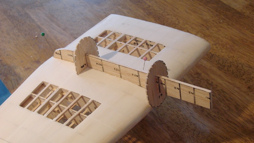 The beam is glued to the wing and the two formers which define the wheel well have also been attached.