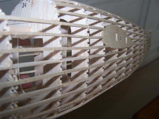 Half an hour later, notches on the left side are completed. The 1/16" sheet gives a perfect slot for the 3/32" stringers. Now for the right side.