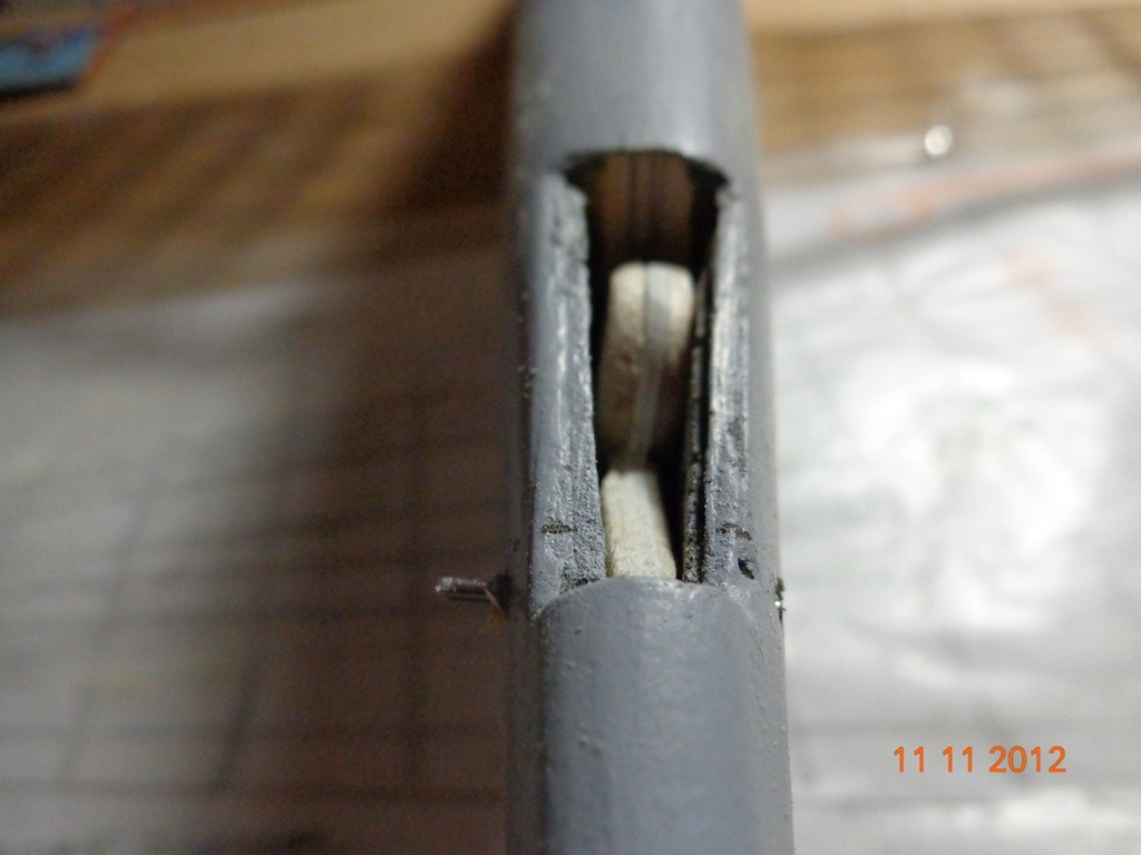 Tail wheel fabricated. 3/32 added to each side of stock plastic tail wheel. metal rod inserted through all (you can just see it sticking out on the left side of the fuselage.