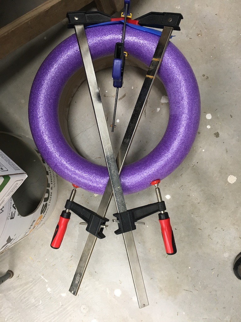 The engine cowls are pool noodles. I ripped them lengthwise on a table saw and then wrapped them onto the tube to cut to size.