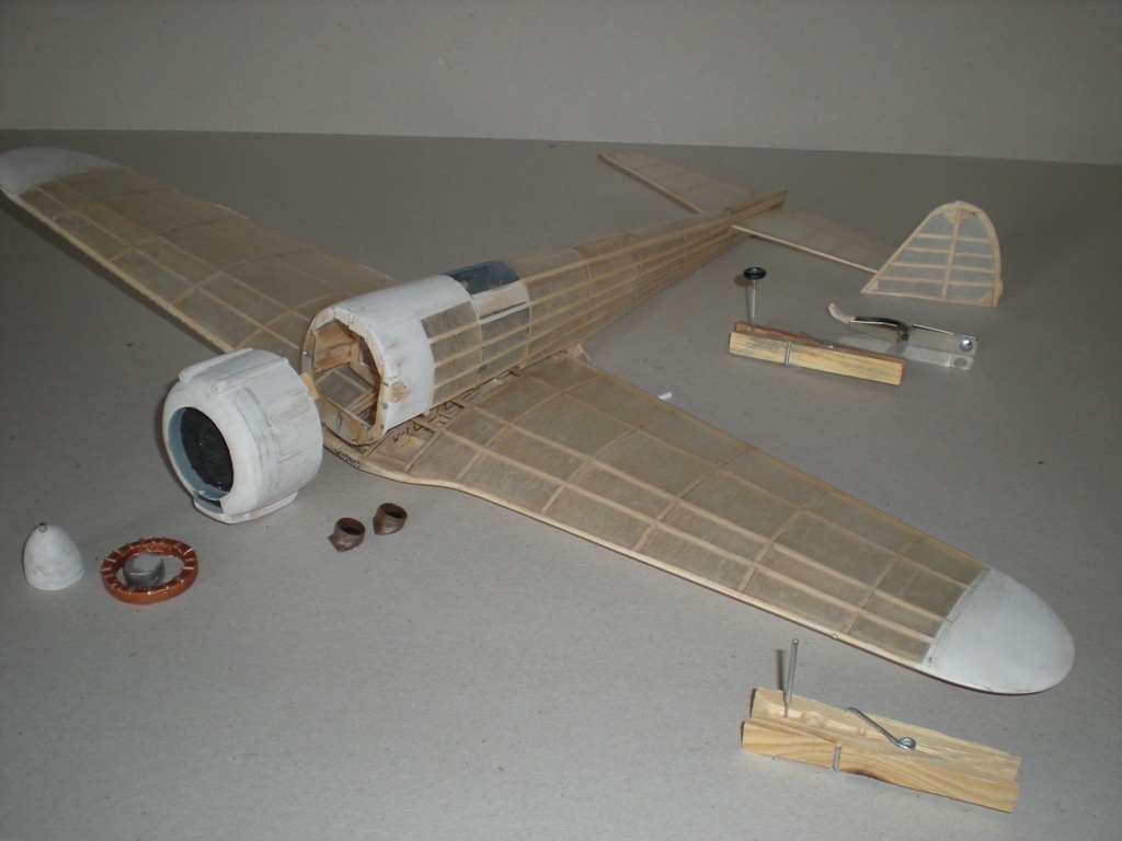 | jerry campbell | 11-Sep-09 11:50 | | The additional parts are located near their destination. The cowling with the addition of the mg covers is at the front of the fuselage. In front of the cowling are the radiator, silver spinner base and the spinner. To the side of the cowling are both of the exhaust pipes. At the end of the wing is the pitot tube. near the tail is the tail wheel and yoke |