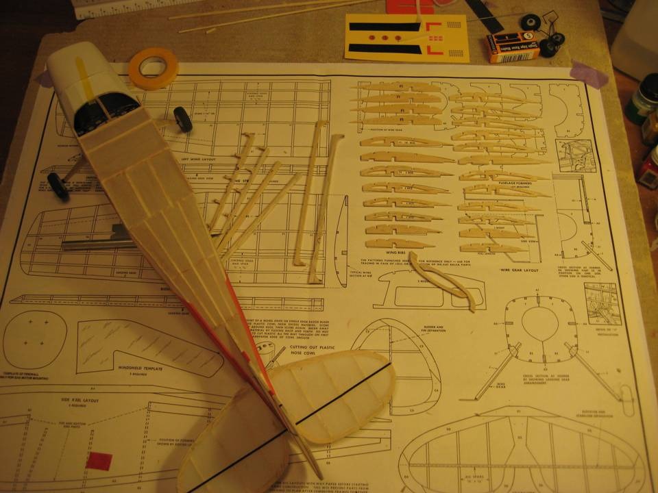 Thanks. I look at your Super Cub as the benchmark for a flying 300 series. I am leaving the the 4 wing ribs that will go at the wing root solid. The plan is to put a pair of 1/16 wooden dowels through the fuselage and into the wings, or maybe a piece of aluminum tubing, not sure yet. The wing rib that will accept the strut is solid as are the two most outboard ribs. The last 2 ribs are staying solid because it became apparent as I was cutting the larger ones that the smaller ribs would be nearly impossibe to skeletonize and keep in one piece. The tiny weight gain made by removing lumber would probably be overshadowed by the added glue to repair the piece.