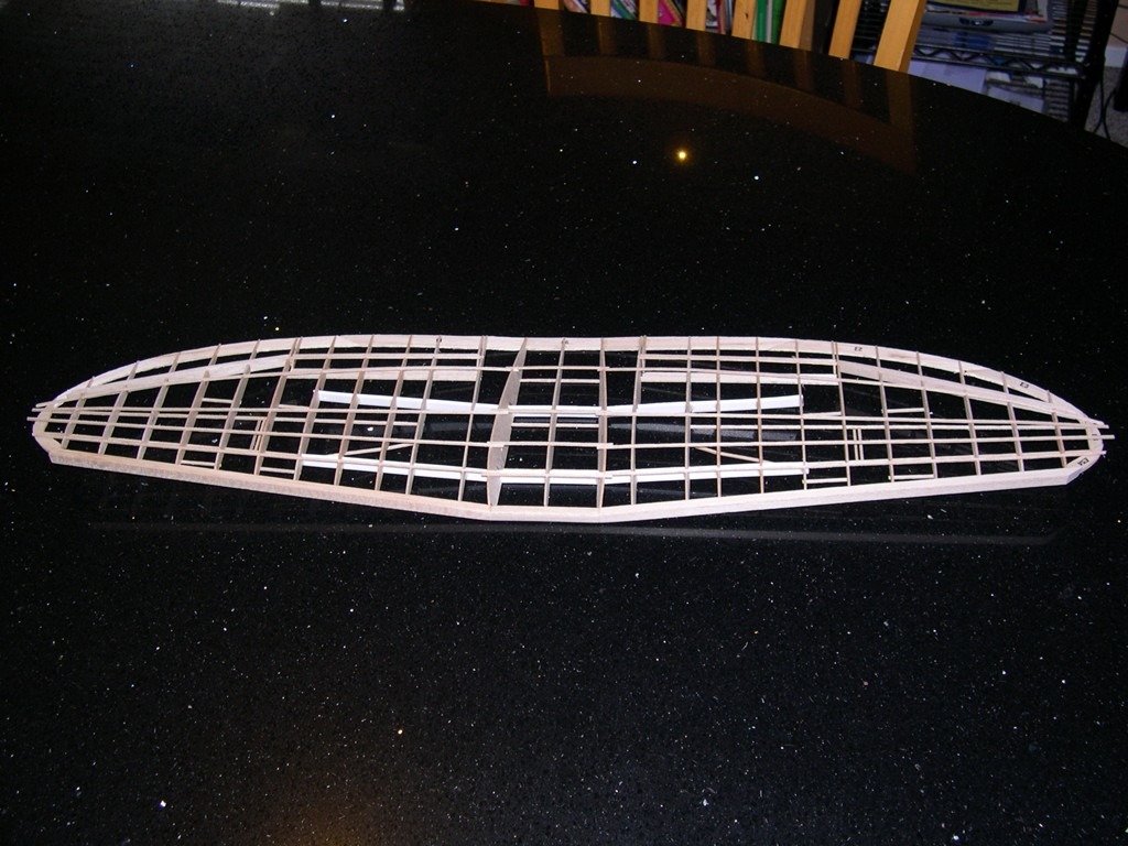 Wings are framed up, too. All according to plan so far, but I'm sure I'll add a few more stringers and maybe do a little planking. Will carve solid wing tips, too.
