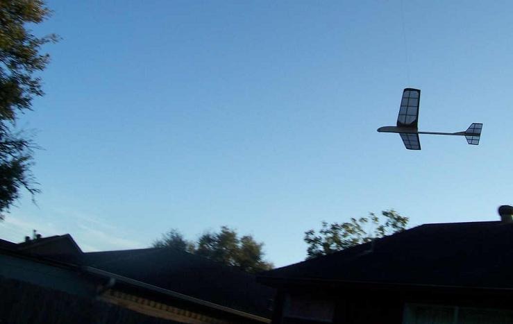 By late afternoon, the Jr. CloudBuster was ready for flight. A couple of test glides without the swing line showed no bad flight habits. Attached the swing line and did some test flights which went well.