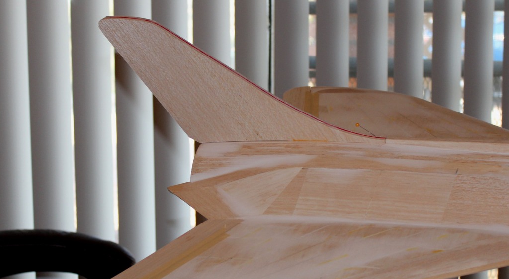 Next is to sand the fin/rudder to airfoil and install it.