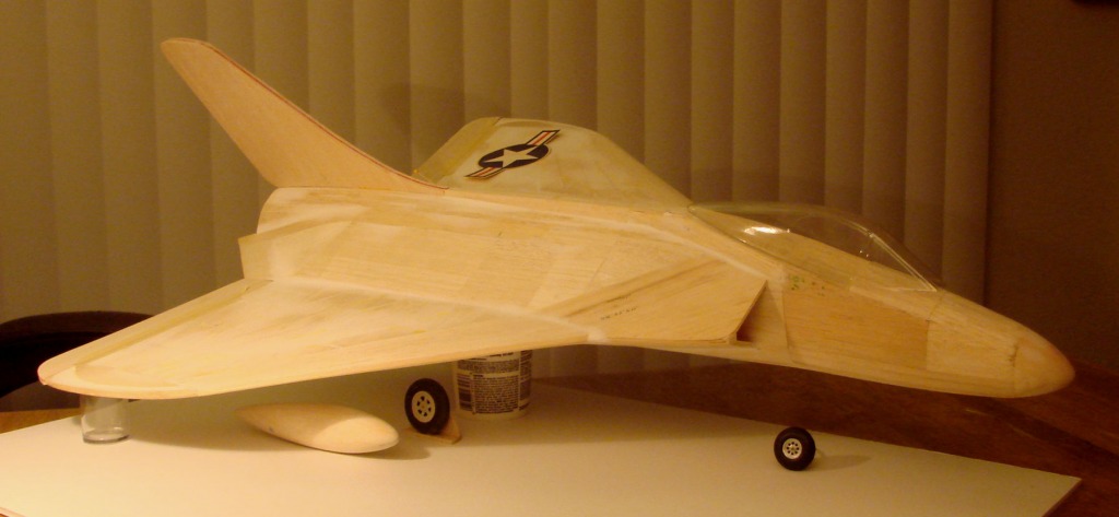 | David Duckett | 01-Feb-16 08:29 | | Scale wheels for balsa models of planes made after WW1 are impossible to find unless you're building a Cub so I look for scale-like wheels. The big wheel is the standard Guillows 1 3/4" and will not be used as a 1 1/2" size is called for and they're on the way from the UK. The nose wheel is 1.25", a lightweight design with a nylon hub from China. You can find more wheels on Ebay by searching for "R/C aircraft wheels". 3 of the 1.25" wheels were just over $8. The balsa "tanks" were carved for the F-80 and may or may not be used here. |