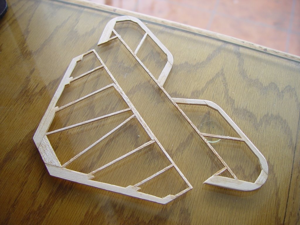 Showing the lightened horizontal tail feathers. They will be operated by a pull-pull cable system, for maximum lightness.