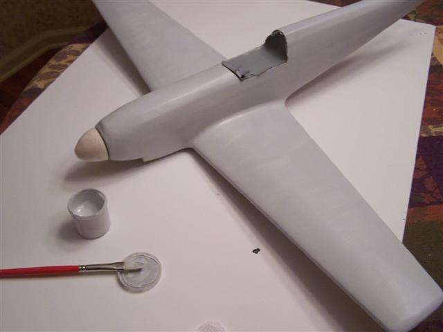 Not a happy camper right now. Fuselage shows way too many stringers. I realize the curve was tight. Next time will sacrifice a kit to planking and shaping. Maybe the 1/32" sheets were too light, but tend to think Moostang was a little heavy on the 320 grit sanding. Am happy though with the turned spinner. Let's see if camo painting really means "camo". Ouch.