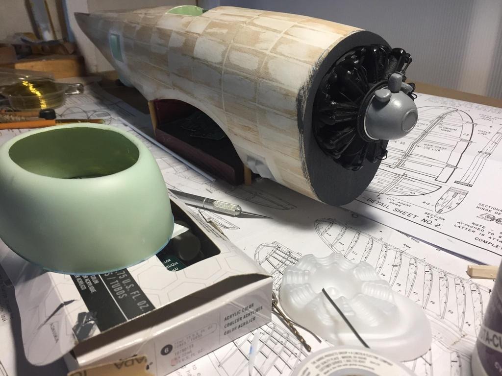 | heywooood | 05-Dec-20 22:40 | | as I note in the videos the Guillow's engineer split the cowling in half - the cowling on the Republic P-47 was massive and in reference to the kit, would have extended from former #2 to the nose. The firewall would and should have been where former #2 is. instead we have former #1 cutting right through our motor. Rather than change the fuselage and do a bunch of surgery on the kit I just buried the motor in former #1 - now all I have to do is make the seam between the plastic part and the balsa fuselage disappear.. |