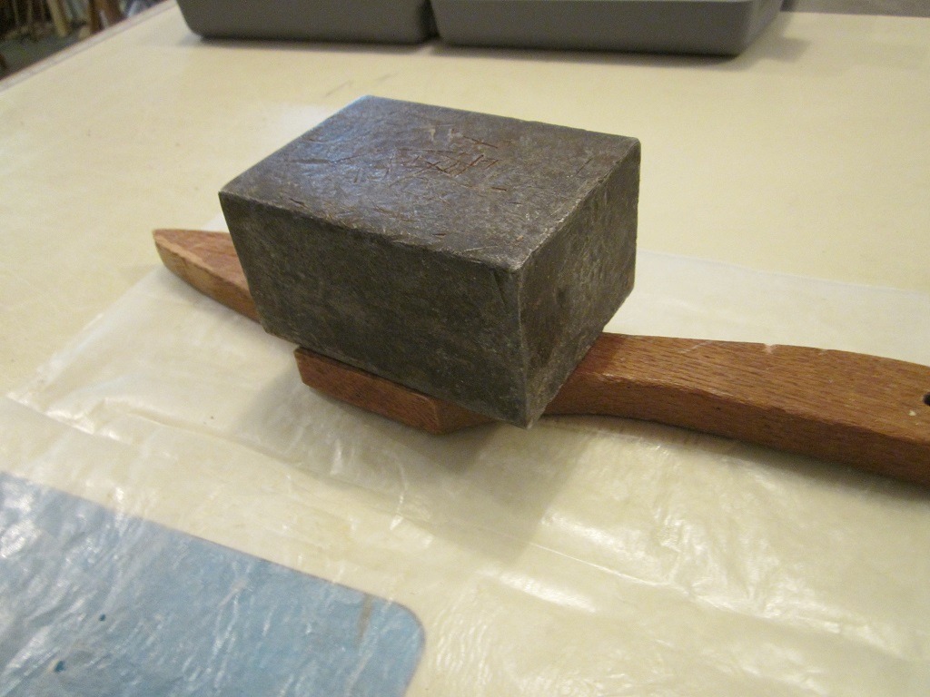 "Clamped with cuts down on flat surface (Note waxed paper) for a few hours.