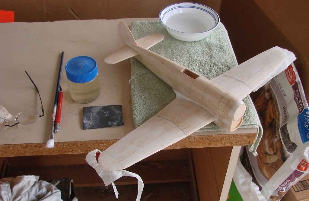 When it dries I used 220 wet/dry sandpaper to sand away the excess silkspan. The sanding block is also used for the same purpose. Each side required two pieces.