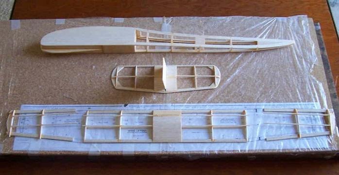 Work on the modified Lancer continues. All that remains to be done is gluing the wing panels together, covering the model with tissue, and final assembly.
