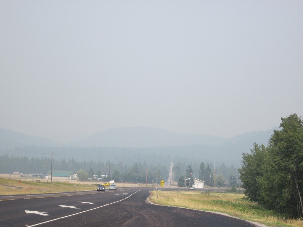 RGood - Be sure to come early in the summer. This was 2 weeks ago. I swear that every fire west of the Mississippi sent smoke our way. Our place is about where you see the road end