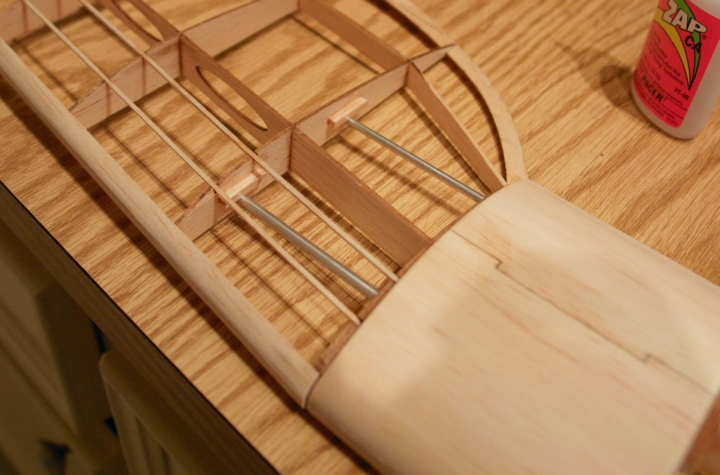 Here's how the dihedral is set in place now that we can't use the laser cut holes. 1/8'' balsa is used to hold the tubes at the correct level. Should be strong enough I think (stronger that the original holes, I would think).