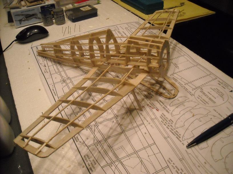 Before landing gear was added, had to make sure the landing gear structure was tilted correctly. Next step was to sand the skelital frame of the fuselage, wings and stabilizer. Going on line to see other examples, such as here at VirtualAerodrome.com has really helped me get started. Everyone here has some pretty cool looking aircraft and there certainly is a lot of talent here and good advice for beginners like me.