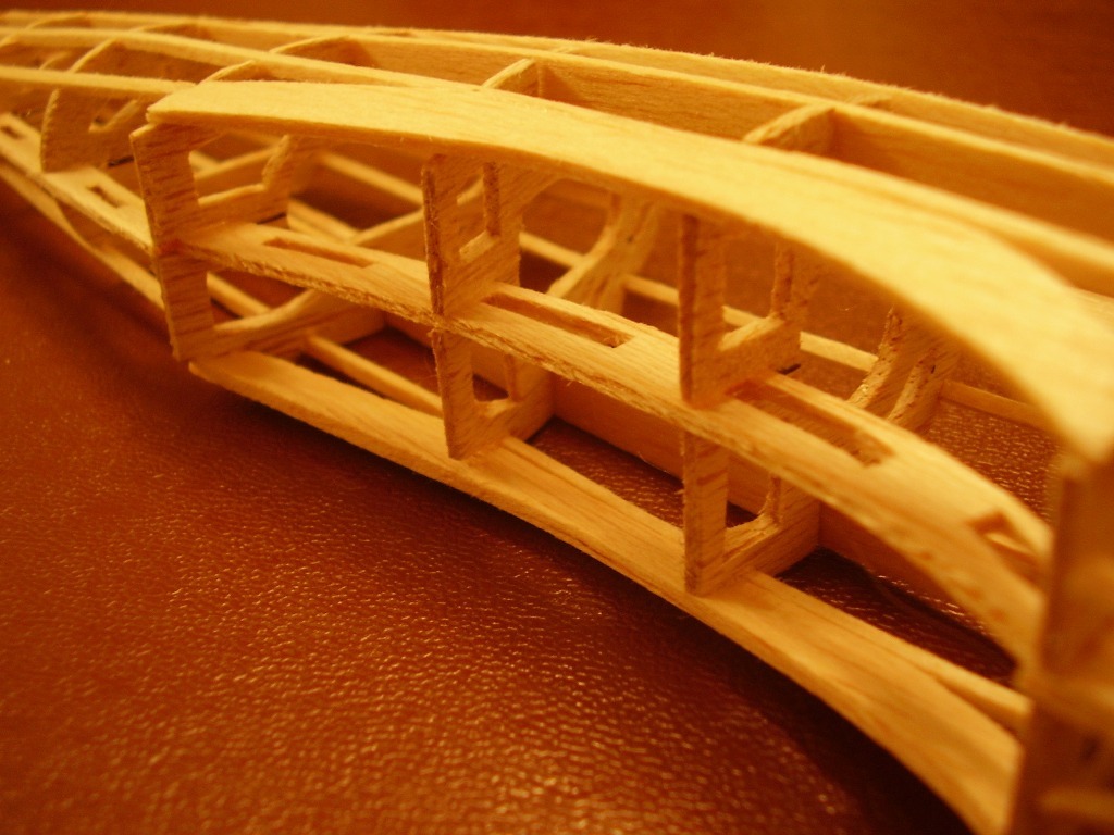 | John Cooper | 08-Oct-09 08:35 | | Removing balsa from a Guillows model always helps. These models are so robust that you can actually remove alot more balsa. I suggest cutting the longeron, with the square holes in it, down to half its thickness or less. You can also safely trim down the thick side longeron by half. Basically almost all the model wood can be trimmed to half thickness. |