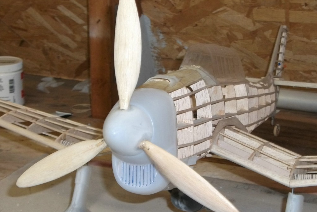 prop on plane and a tone of sanding to do.this is an easy build for a plane!