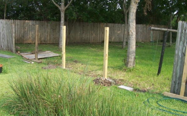 The two light colored posts in the center of the pic are our current strut installation.