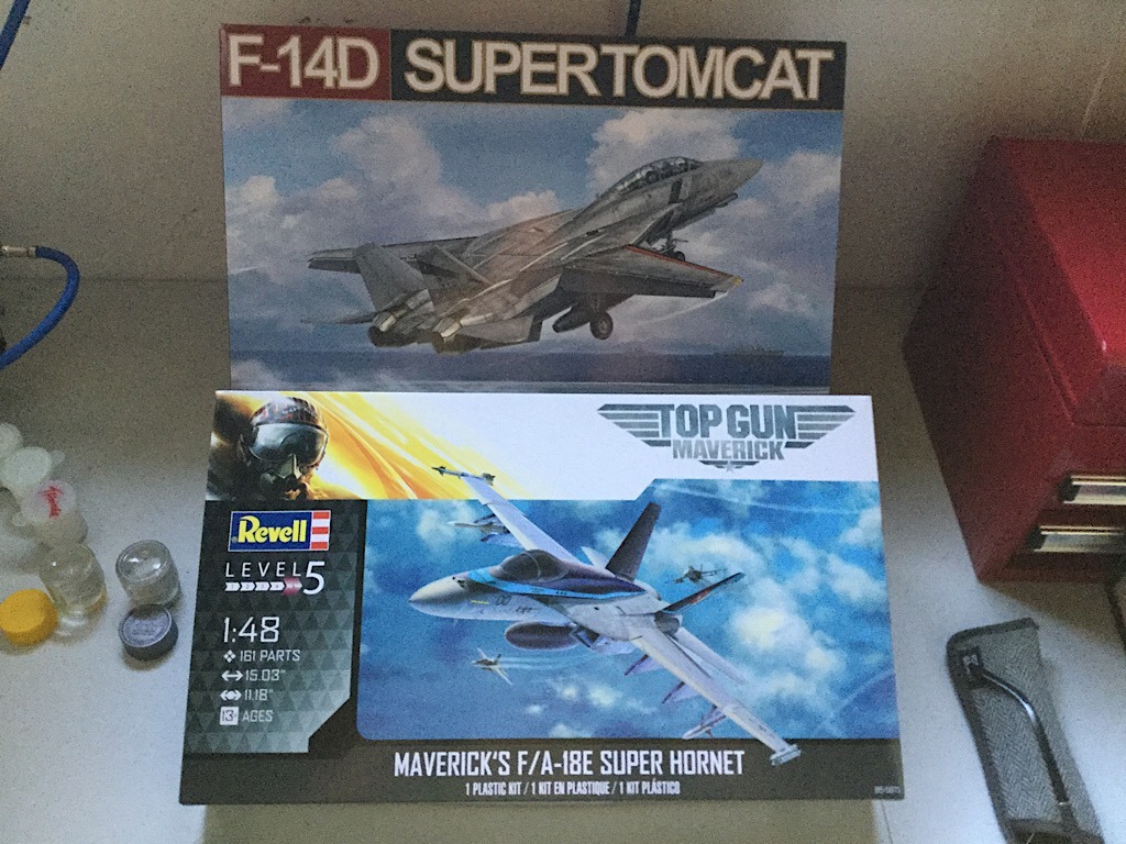 Happy birthday to me! Both 1/48 scale. The AMK F-14D is a beautiful kit, can’t wait to get them both started ????