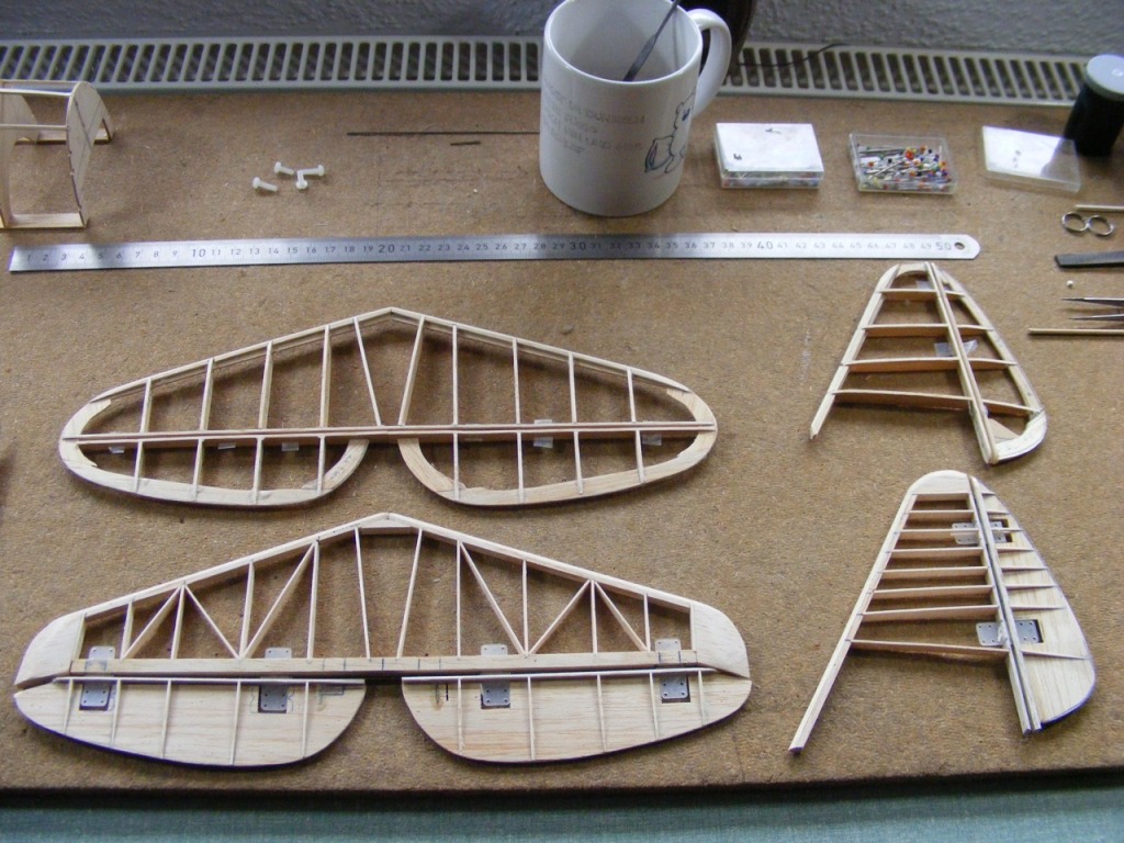 Stabilizer and fin rebuilt; new one in the foreground. Weight is (old/new): Stabilizer: 5 g / 8g. Fin: 2 g / 3 g.