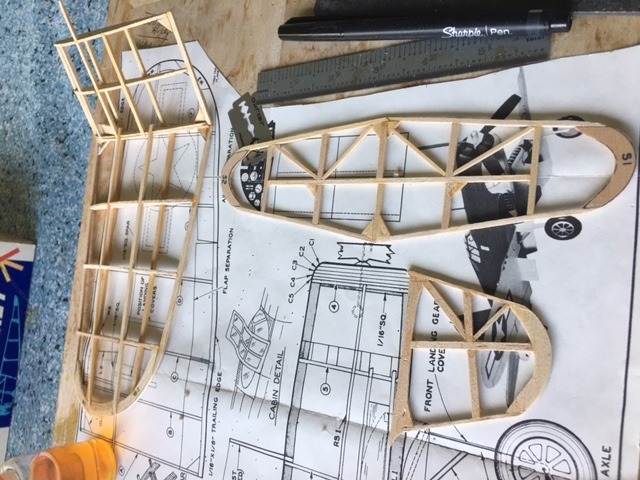 I added three extra pars for the wing to prevent warps and used tissue from EZ Build. I did a dry-fit to get the wing incidence. I added 1/2 inch to the recommended plan.