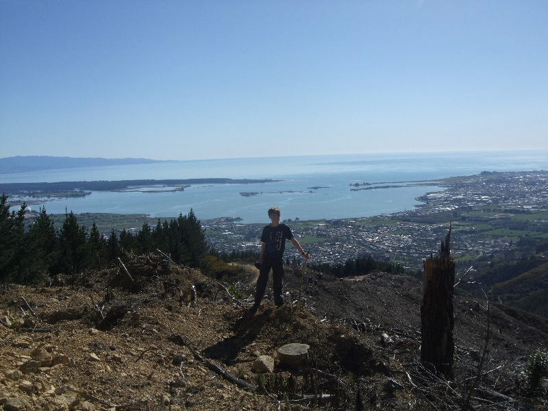 Tasman Bay, Nelson, New Zealand on a beautiful Spring day and what a bloody hike up the hill ! Teenage son is in the foreground- no problems going up hill for him !
