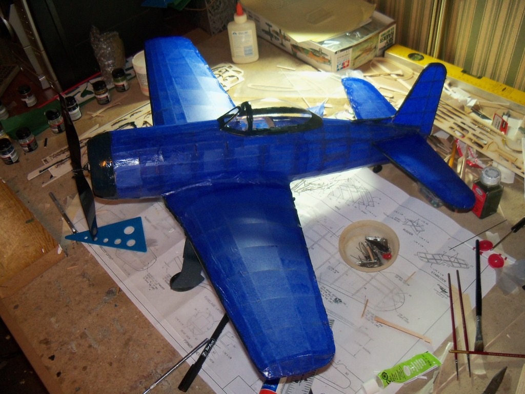 I've decided to paint the bearcat. it was built as a tissue flyer, but I think i'll paint it dark sea blue.