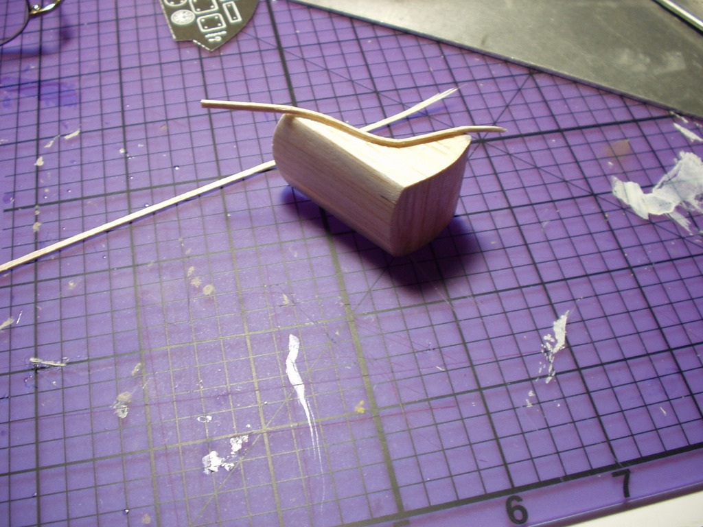 I apologize for the volume of photos in the build. It's tedious but I thought I'd share whatever ideas I come up with during the build process. My reference photos show that the seat is light gauge steel; four sheets that were formed and then riveted together. The edges are rolled around a rod. I should have used solder wire to replicate that but I decided to try with balsa wood. Glued a strip of 1/32 x 1/16 along the edge. I had to soak the wood with water to get it to soften. I might try Windex with ammonia next.
