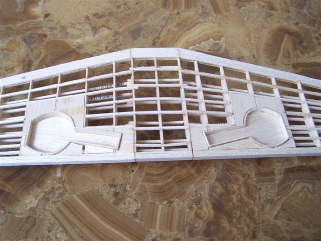 1/20" balsa backed by .01" styrene to allow for bending. Left high as wings will be sheeted with 1/32" and sanded flush later.
