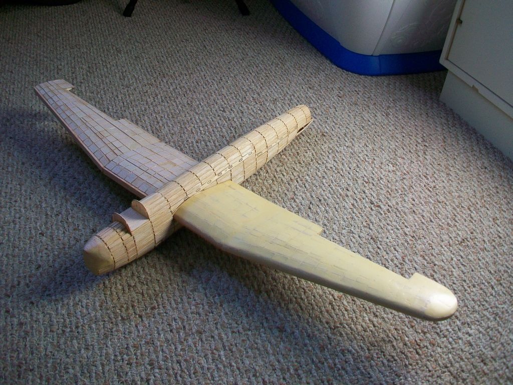 Left wing completed and test fit to the fuselage. Some infill needed on bottom of right wing before completion.