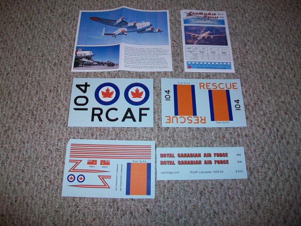 These are 1:32 scale decals from www.CanMilAir.com and cost $65.00 CDN and well worth the money. It comes with a small booklet about the S.A.R. version of the Royal Canadian Air Force history. I'm very excited to get this in the mail today. :)