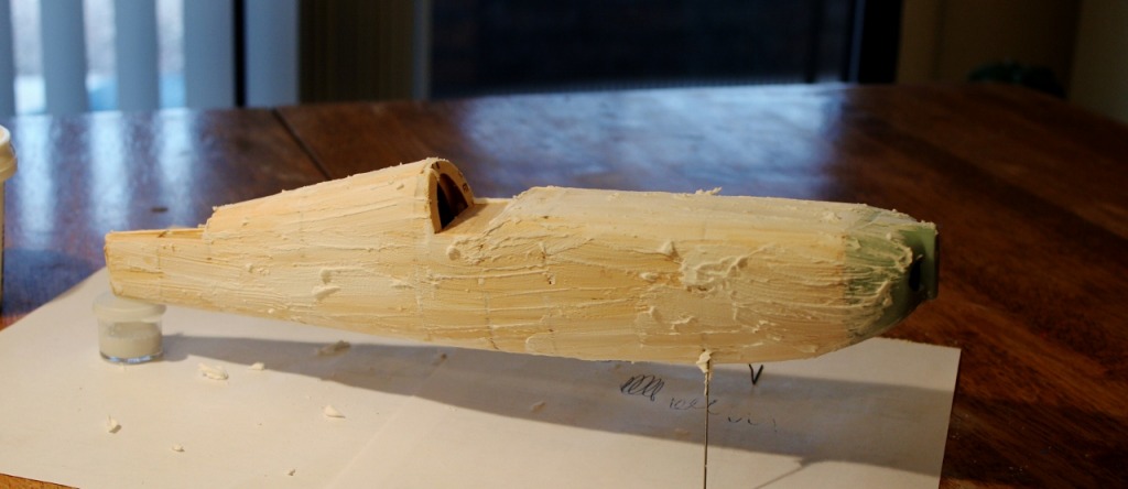 It's important to sand away the filler as soon as it dries cause after that it just gets harder and harder to sand. This required 45 minutes.