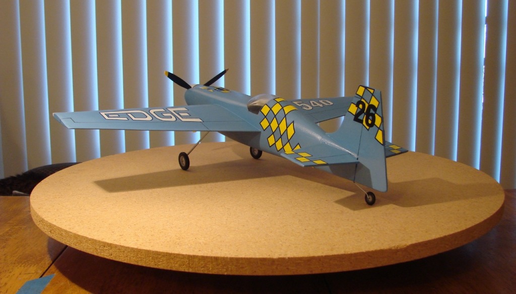 Many colorful designs and patterns are used on RC models of the EDGE, but the yellow checkerboard decals, which are a major component of this Guillow's kit, do put some limitations on paint scheme ideas.