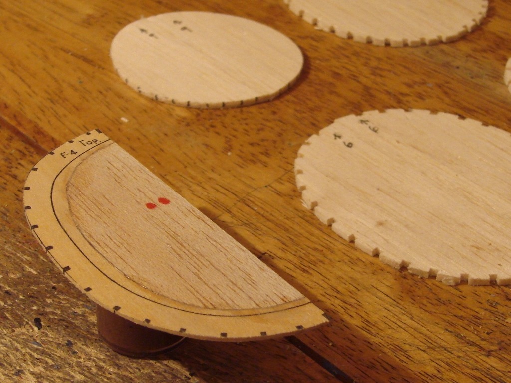 ...and glued 1/32" balsa in the holes left from removing the parts from the printwood. I then used the pieces as patterns and made all new formers from 3/32" stock and I've notched them for 3/32" stringers.