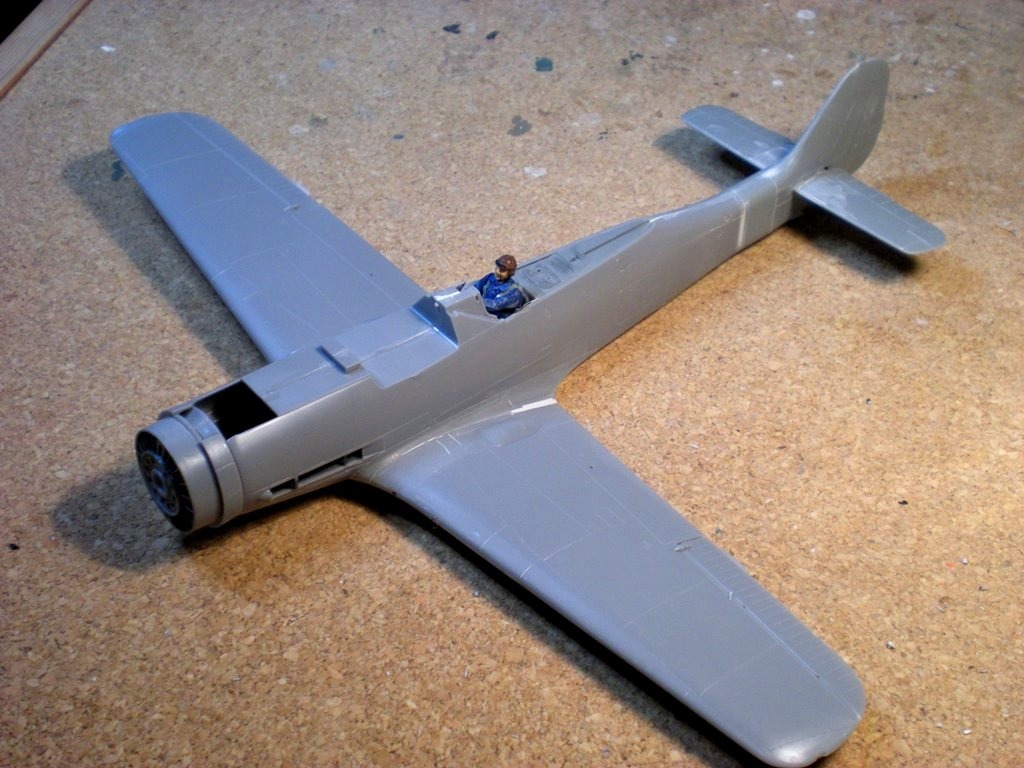 The wing is installed to the fuselage and a bit of putty is added to the rear.