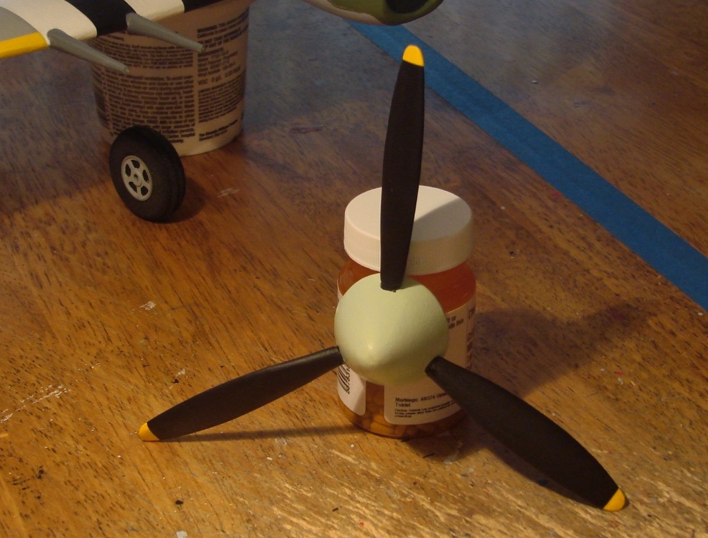 The completed prop assembly is ready for attachment but will be one of the last things to be glued on. This 7" scale prop is 14' on the real aircraft.