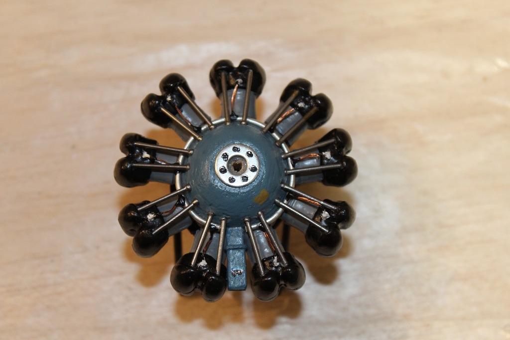 Done. !/16 scale, 2 5/8 inches. Since it's covered by a cowl, I decided to forgo the exhaust as no one will see the backside anyway.