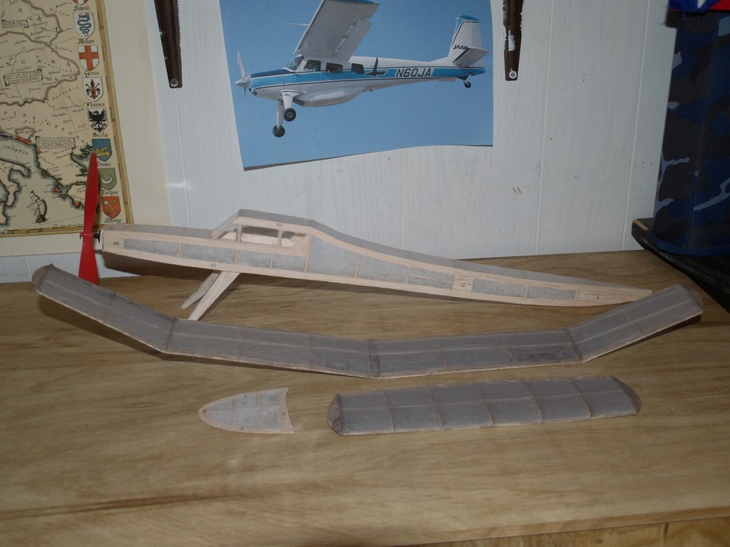 Completely covered with tissue. This was my first ever stick'n'tissue airplane, so I learned lots with this plane.