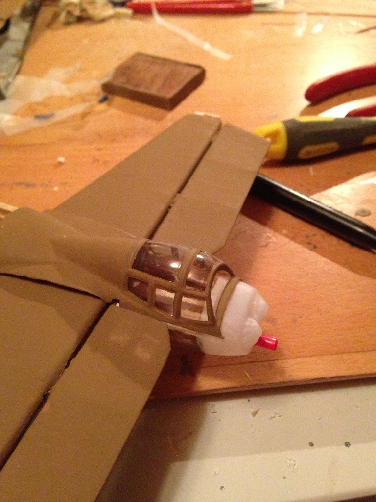 Tail gunner getting some details. red tube is for antenna and goes all the way from the nose