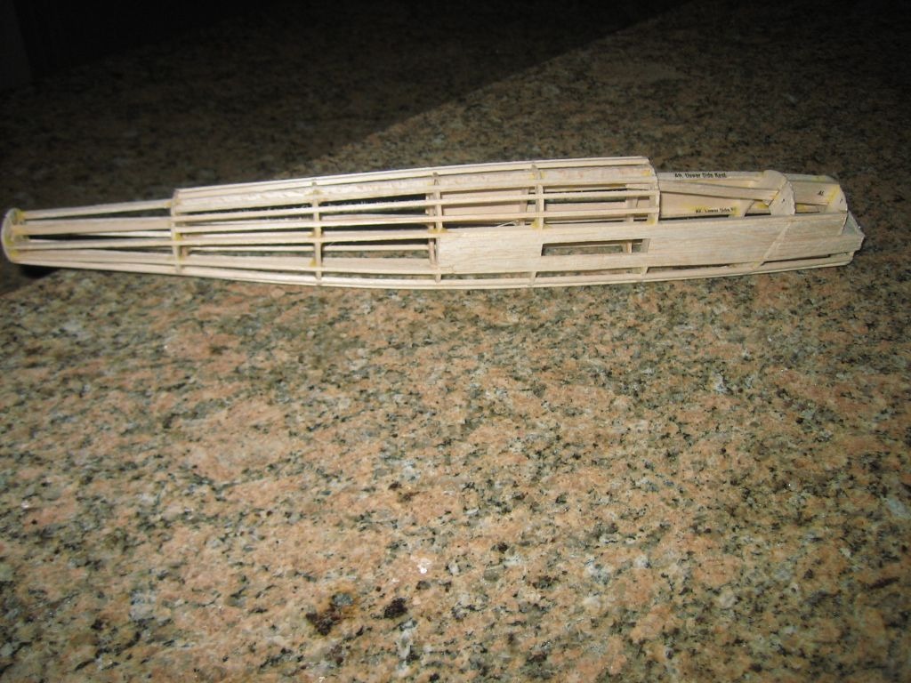 Here's the completed fuselage. Iknow you can see a lot of glue globs but I don't intend to fly my models so extra weight doesn't matter.