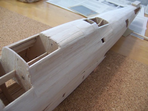Instead of 3/32 pieces, this is covered with 1/16 planks cut from a larger sheet then filled
