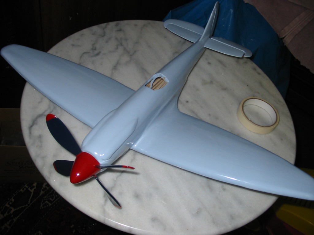 after a lot of broken grinders, a lot of frustration, I finally succeeded to cover fuselage and wings with thin bals veneer, which was put in the primer. |