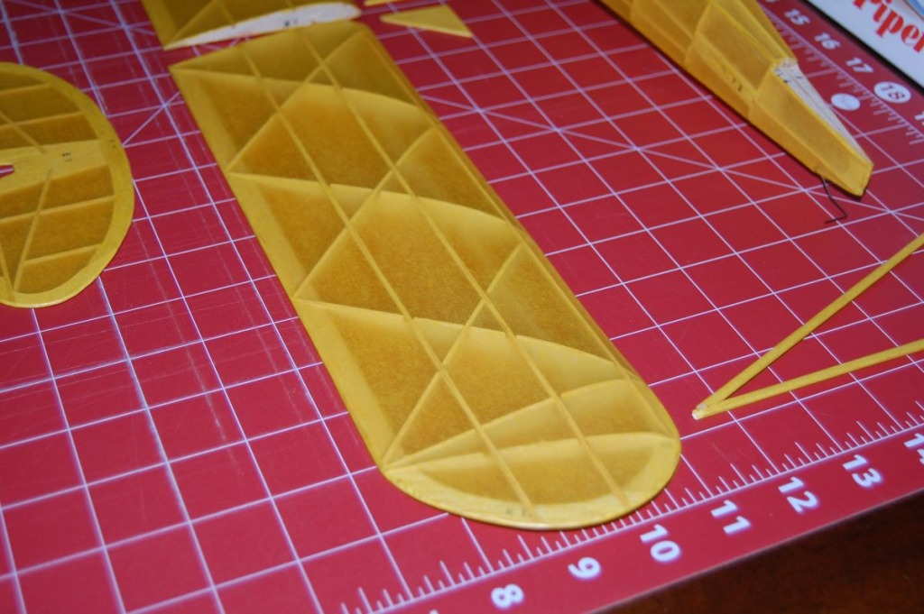 | scigs30, Image # 44792 | 05 May 25 05:46 |  I forgot how easy it is to cover with Japanese tissue, much easier than Domestic. Like all my vintage builds, I would have used the supplied tissue in the kit, but I cannot have a white J3 Cub. Since the span is too great on the on LE of the wing, you can see where it pulled it in, I knew this was going to happen, oh well. Tissue applied with 50/50 Elmers white glue and water then sealed with thin Sig Lite Cote. We have family coming into town so I will not be able to finish for a week or so. |